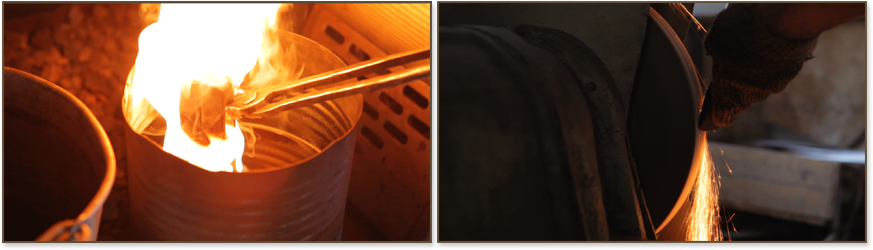 This is a very old and effective way to protect the tool from rusting. After grinding and polishing the axe blade, it becomes razor sharp and is ready to get its own unique handle.