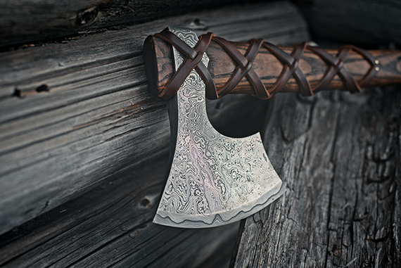 Damascus Woodsman Axe. Bog Oak 5600 years.