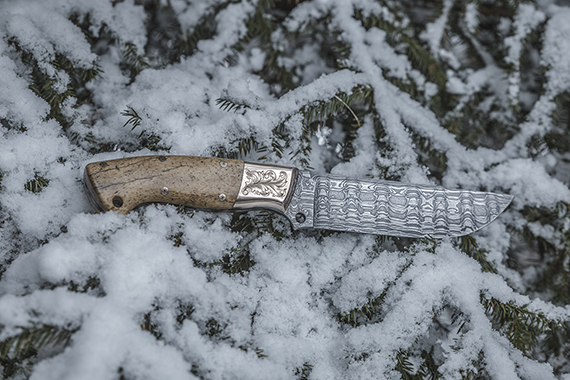 • Unique Damascus knife "Commander" with Steller's Sea Cow handle
