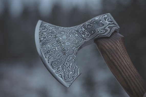 • Custom made Damascus Woodsman's axe
