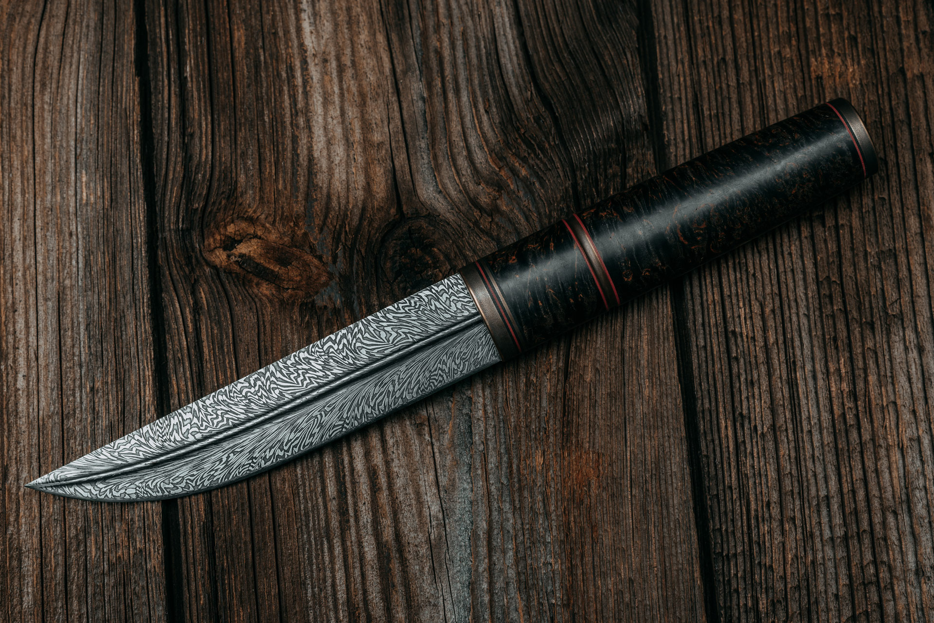 • Scandi Buschcraft knife. Handforged Stainless Damascus