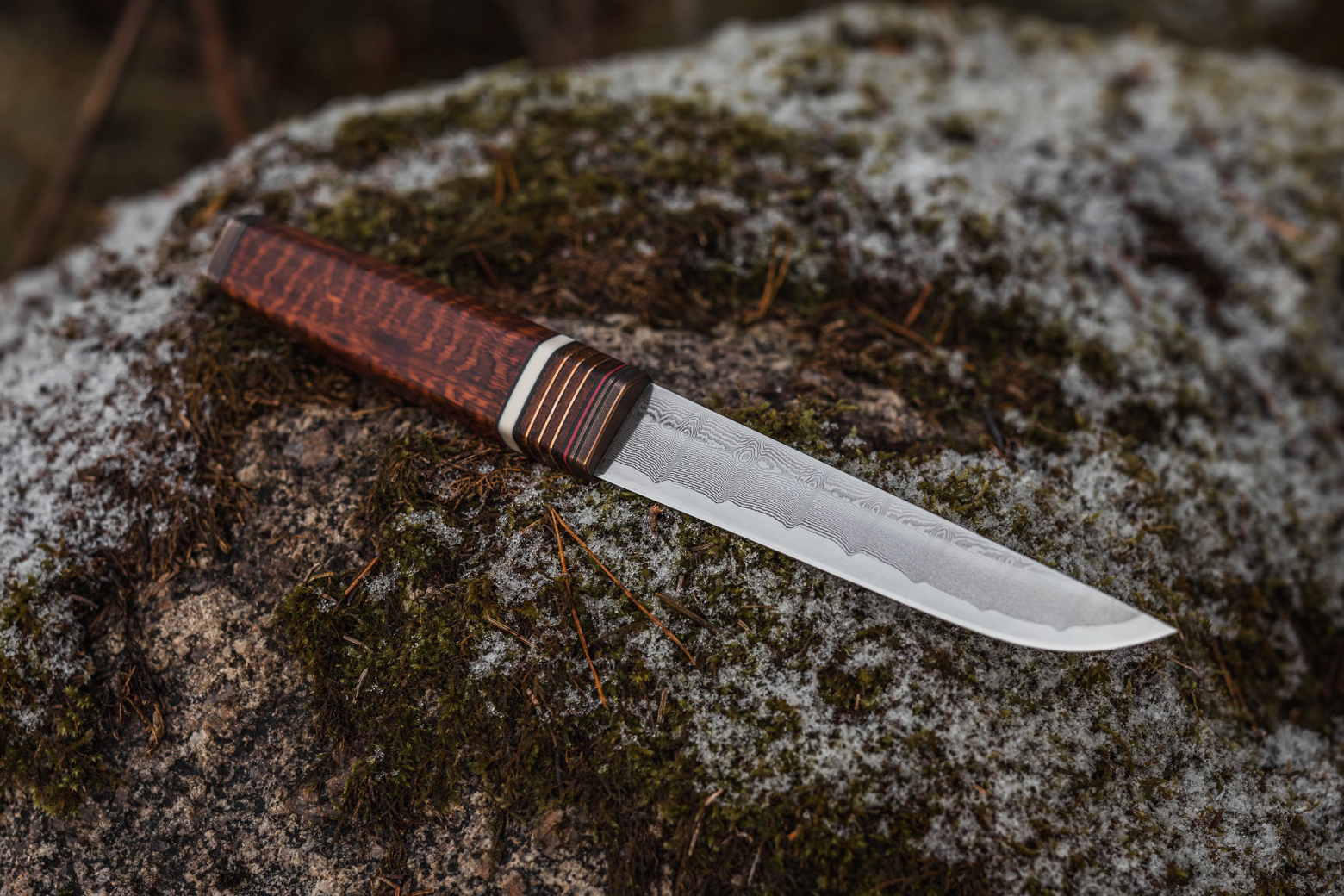 Scandi Buschcraft knife. Handforged Stainless Damascus